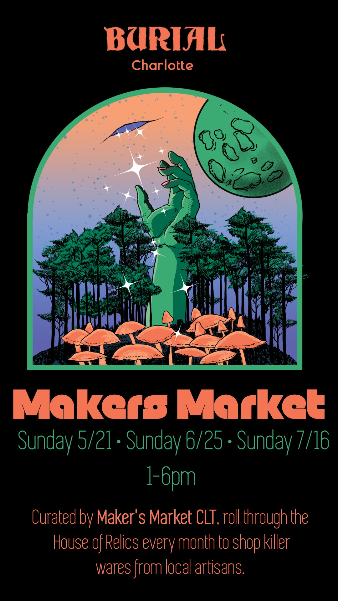 Roll through the House of Relics on Sunday, June 25th from 1-6 PM as we host another CLT Makers Market. Sip on our latest releases while shopping wares from local makers: