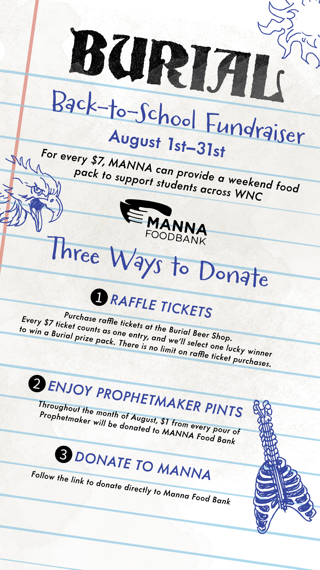 2. Enjoy Prophetmaker Pints – Throughout the month of August, $1 from every pour of Prophetmaker will be donated to MANNA Food Bank.